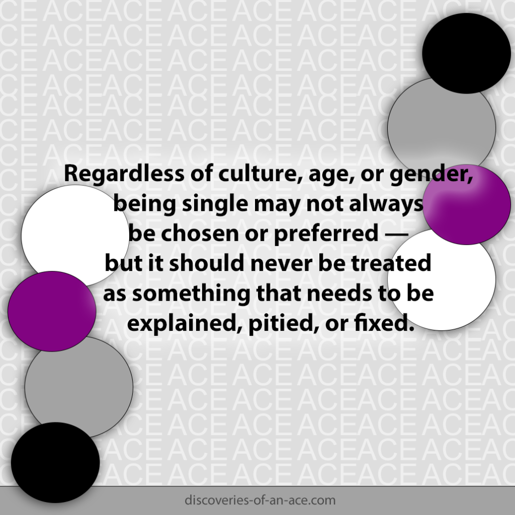 Regardless of culture, age, or gender, being single may not always be chosen or preferred — but it should never be treated as something that needs to be explained, pitied, or fixed.